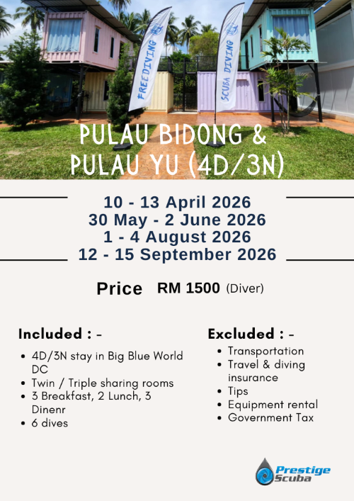 Let’s explore and join Prestige Scuba’s PULAU BIDONG & PULAU YU dive trip.