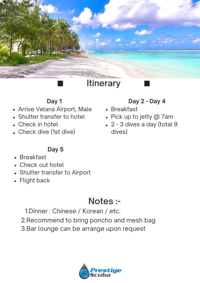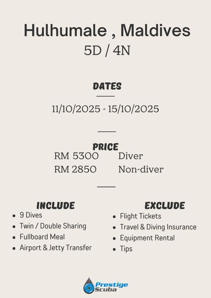 Let’s explore and join Prestige’s HULHUMALE MALDIVES dive trip together.