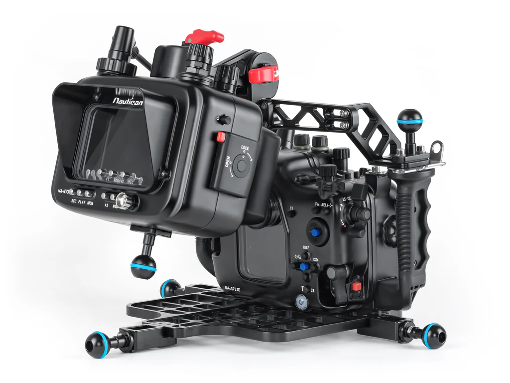 With more cameras offering high quality HDMI and SDI video output, the Atomos Ninja V steps in, not only as a stunning monitor but also as a recorder of 4K 60p 4:2:2 10-bit video to on-board SSD drives in edit-friendly ProRes or Avid formats as well as RAW with supported cameras. The Ninja V+ will allow for up to 4K 120p and 8K 30p ProRes RAW recording. The Nauticam NA-Ninja V-S, when used with supported housings and cameras, allows for the connection of the Ninja V over HDMI 2.0 or SDI in addition to providing easy access to the Ninja V controls underwater. This ‘S’ version allows for the use of the AtomX SDI Module inside the housing to use the Atomos Ninja V as an SDI monitor/recorder or to facilitate SDI cross conversion for a dual/remote monitor configuration.