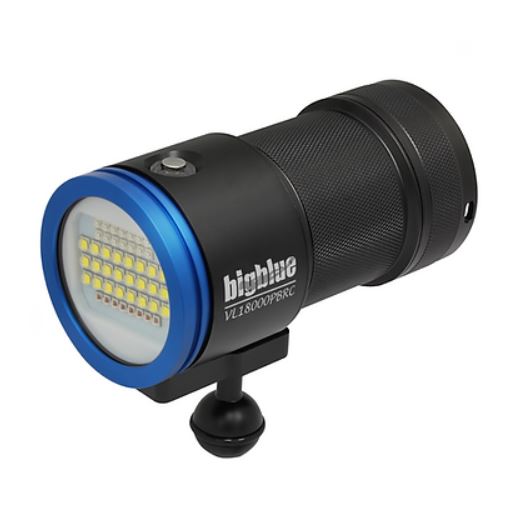 The VL18000PBRC 18,000-lumen pro-video light has been our best-selling high-performance video light for the last two years and now comes with a protective hard case! This light has four power settings and a maximum burn time of 20 hours. It has a 160-degree extra-wide beam that’s perfect for videos and photos as there are no hard edges. The rechargeable battery pack (included) is easily removed for quick charging and also comes with a one-inch ball mount for easy mounting to any Bigblue camera tray. The VL18000PBRC has a lighted battery level indicator and a built-in red led setting for sneaking up on your favorite undersea creatures.