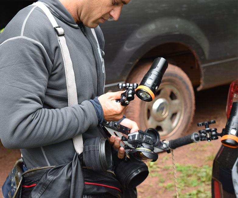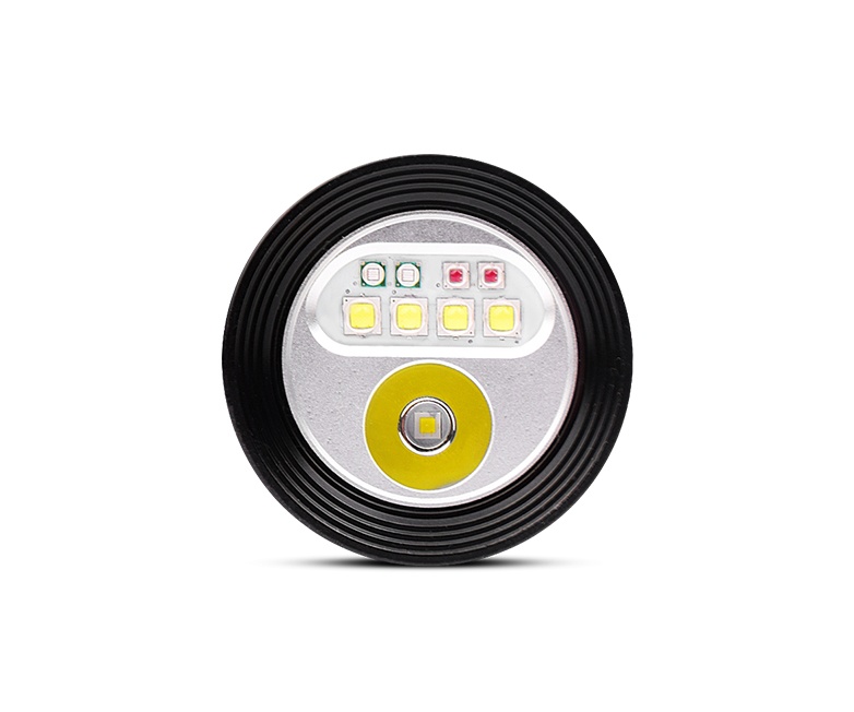 Orca Torch D900V is a video light specially designed for the underwater photographer. It features four colors within one light: Red, UV, Neutral white with 120° wide beam and Cool white with 8° spot beam.