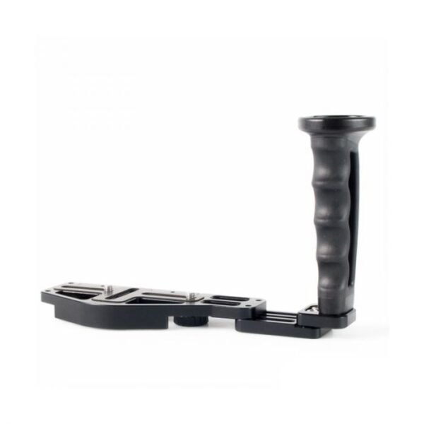 An adjustable right side handle is available that quickly mounts to this tray. With the optional Nauticam right-handle kit added the distance from handle to handle can be adjusted from 8+3/4 inch to 10+1/4 inch (center to center measurement).