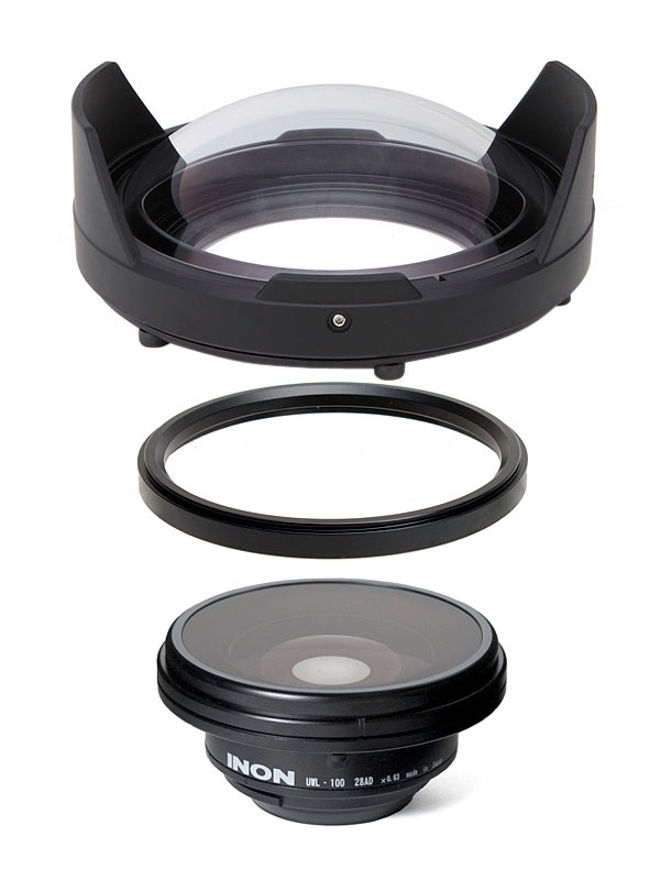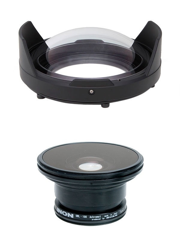 Dedicated super dome option for UWL-100 series wide conversion lens to increase underwater view angle by simply attached it on the compatible wide conversion lens to provide “more wide angle image” and “more close-up image” comparing to sole use of the UWL-100 series underwater.