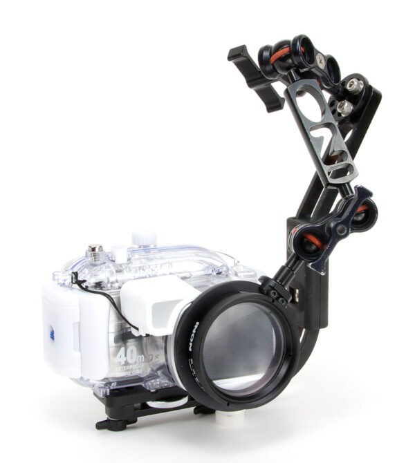 The M67 Lens Arm is attached on ball-joint arm system enabling M67 Mount Base non-compatible underwater housing to use INON close-up lens “UCL-330″/ “UCL-165M67”.