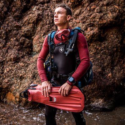 Aqua Lung Storm Max Fins are a pair of long fins with a bungee strap that are made for all your dive. Each size has it’s own colour coding for easier recognition and each fin has a hole in the paddle for storage. Produced using Monprene, a single material construction gives both durability and strength. The innovative open heel foot pocket design Made in Italy